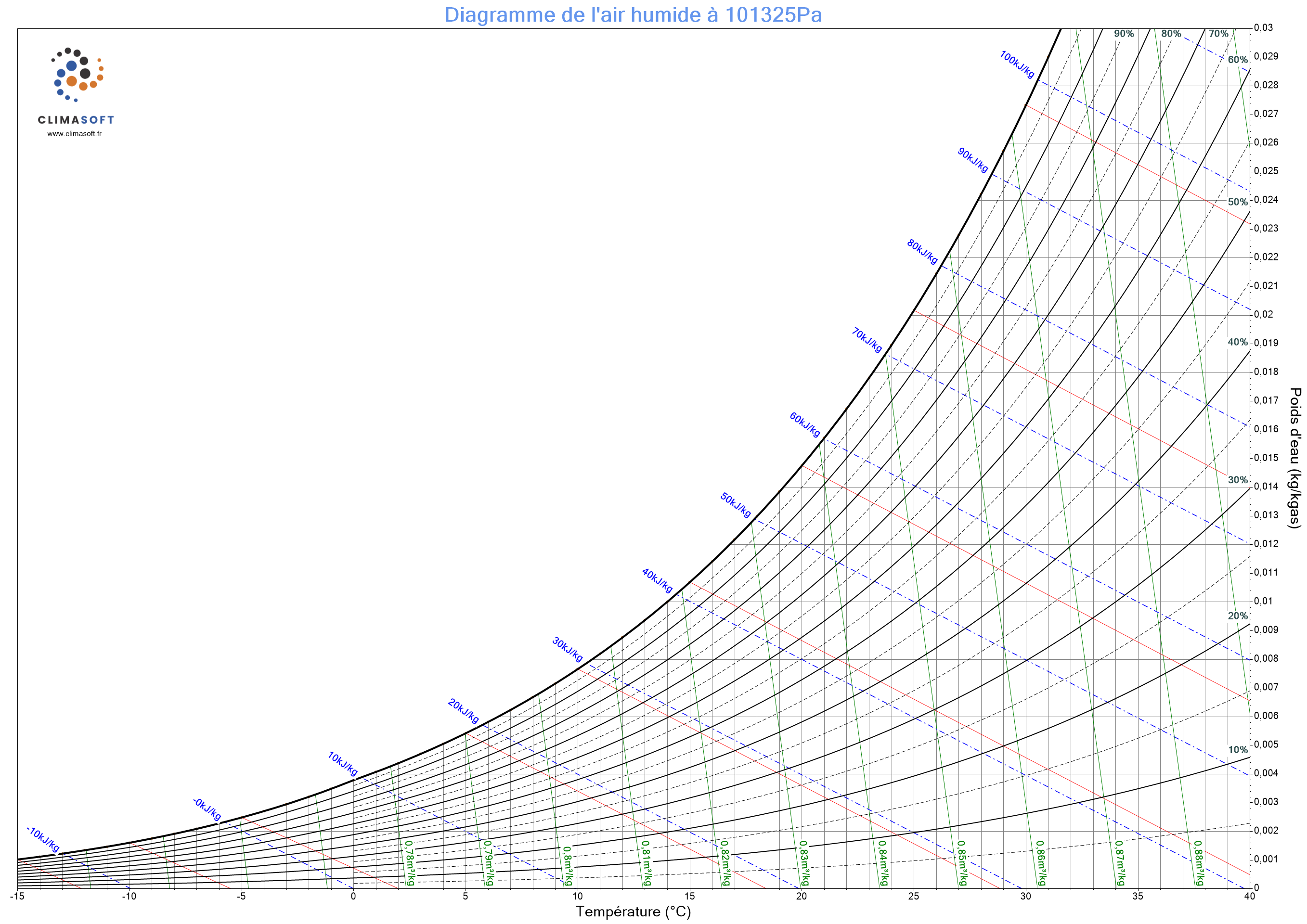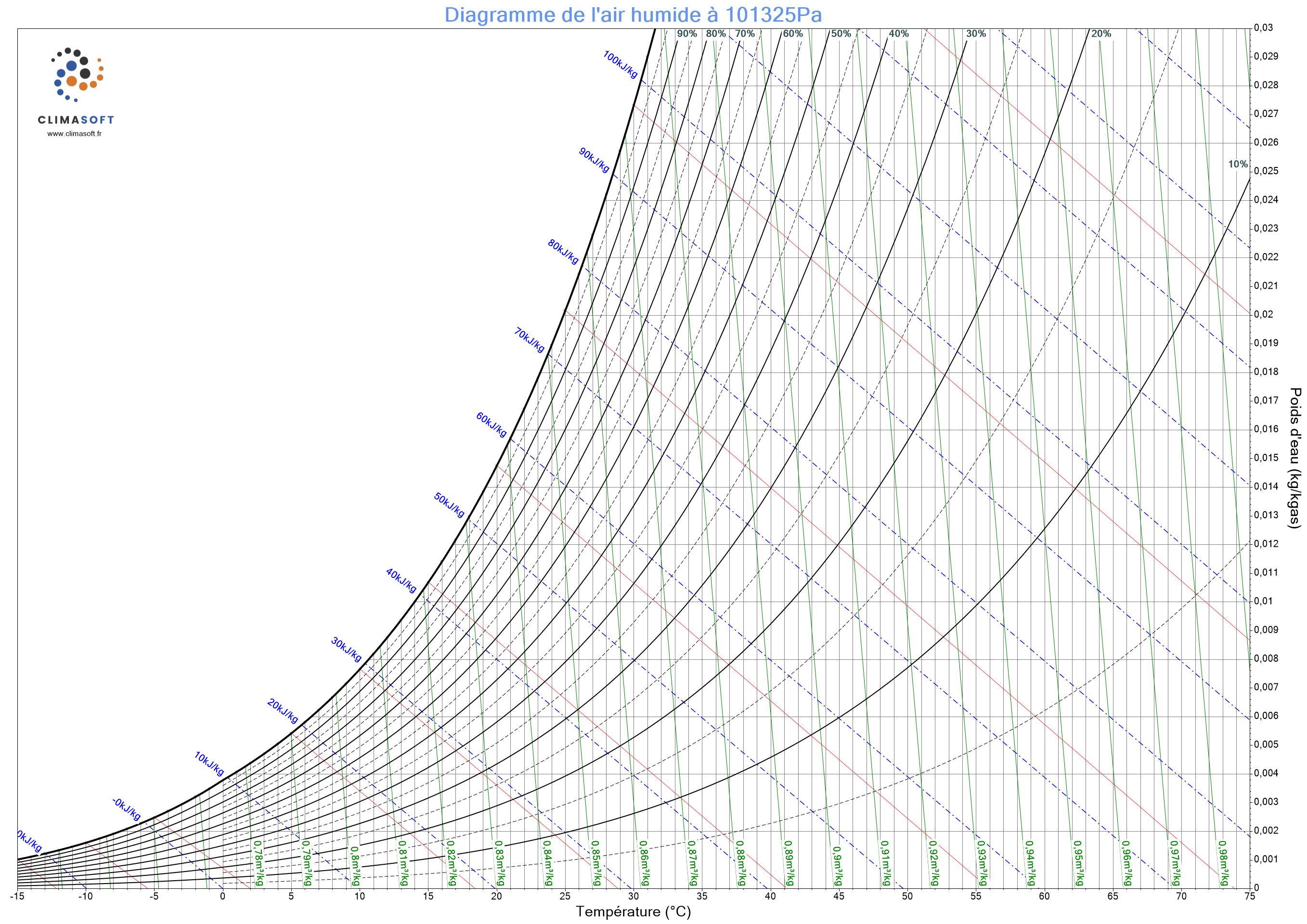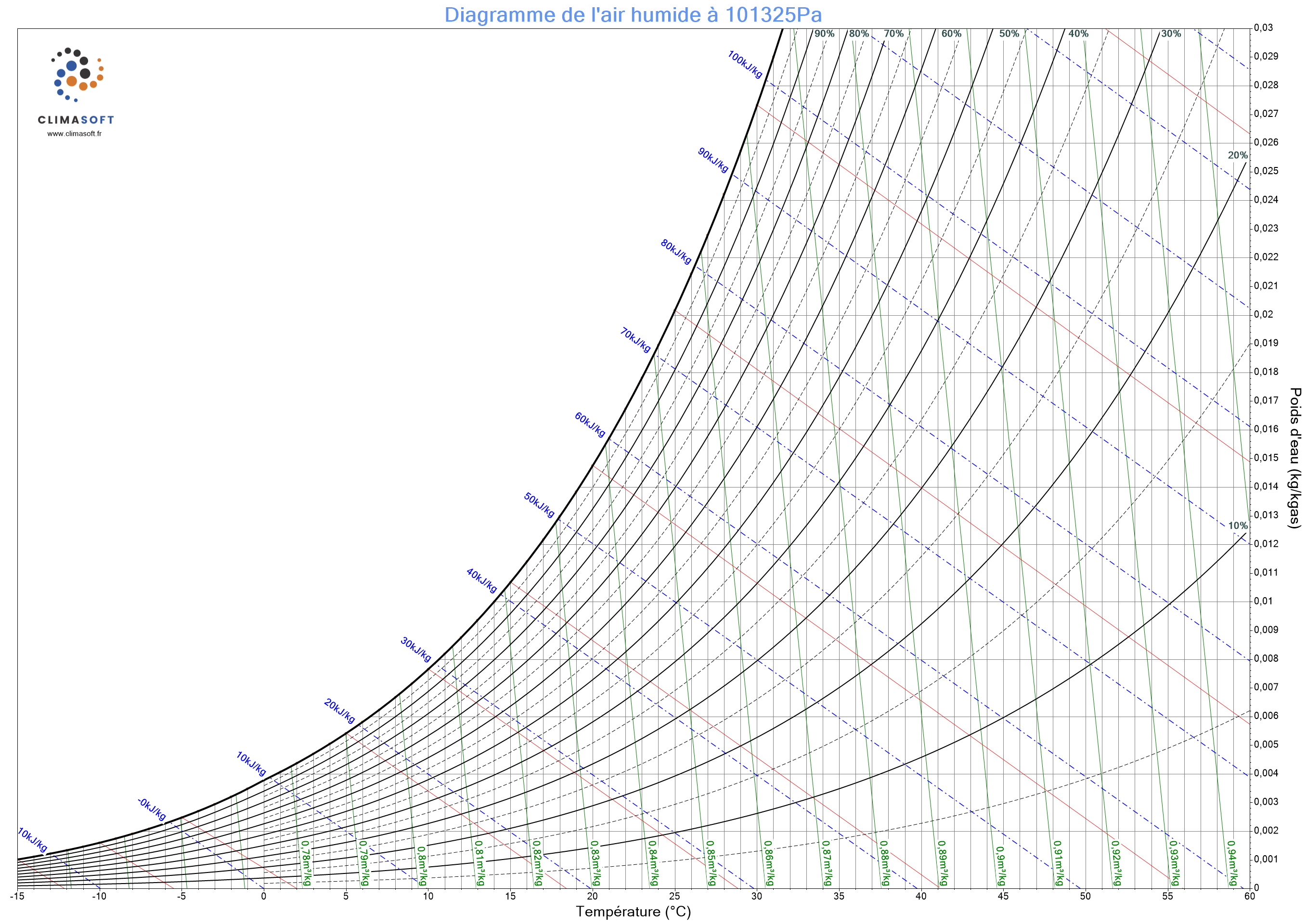 Nous proposons ici plusieurs diagrammes de l'air humide à télécharger au format PNG haute résolution pour un rendu parfait lors de l'impression.